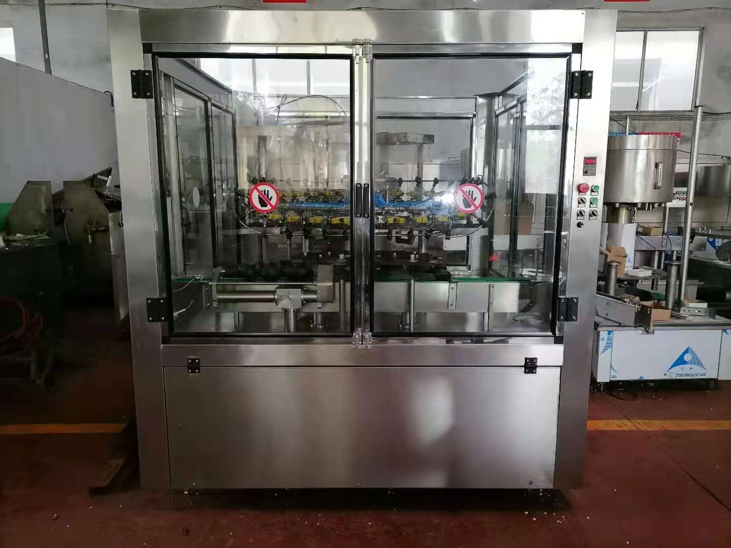青州市同盛包裝機(jī)械有限公司是一家專業(yè)生產(chǎn)酒水包裝設(shè)備的廠家,企業(yè)依靠雄厚的技術(shù)力量,先進(jìn)的加工設(shè)備,聘請(qǐng)高級(jí)電子專家自主研制開發(fā)了JP系列回轉(zhuǎn)式數(shù)字滲漏檢瓶機(jī),YWJ系列自動(dòng)異物數(shù)字檢驗(yàn)機(jī),DSP系列刷瓶機(jī),GZD系列高精度灌裝,XG系列洗蓋機(jī)等多種高精端液體包裝設(shè)備。